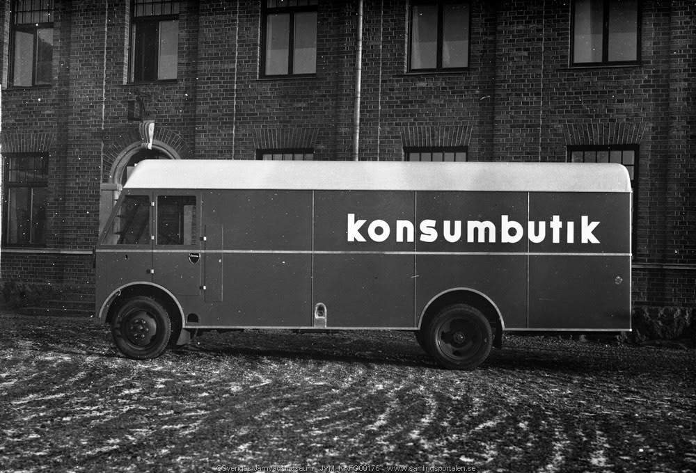 Kooperativa väg gagnar producent och konsument, så stod det i reklamen för Kooperativa förbundet och dom hade inte bara butiker utan satsade tidigt på butiksbussar.
